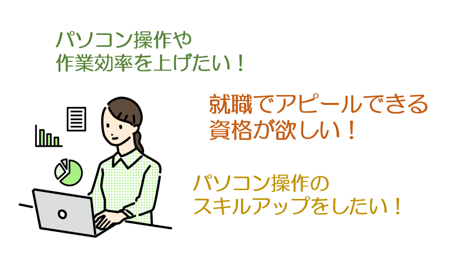 このコースでは、事務職で必要とされるパソコン知識を幅広く習得するため